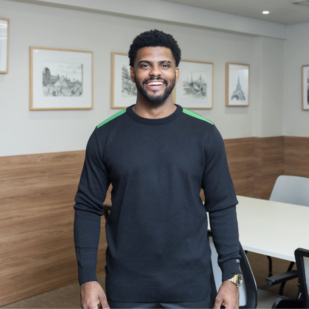 Suéter Linha Premium confeccionado com fio em 2 cabos, proporcionando um caimento requintado, conforto e elegância para compor o uniforme.